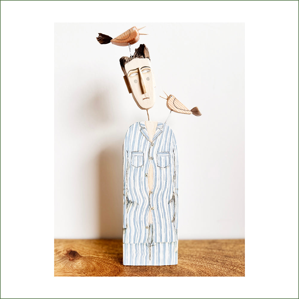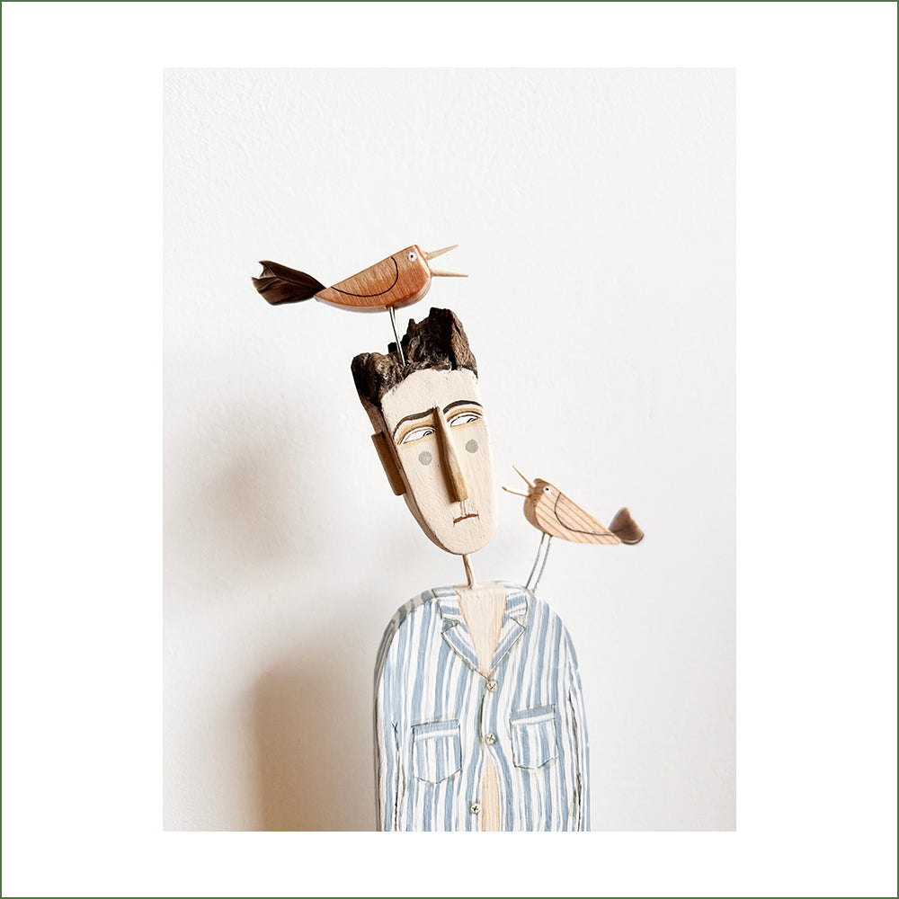 Her original training was in illustration but her love of wood and the characters that she can pull from a piece of driftwood are just glorious. With the help of her trusty bandsaw, sanding machine, hand tools and paints, figures emerge, each telling their own story, often with humour and irreverence!