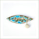 Brooch with green enamel on copper with sea stone and glass seed beads.